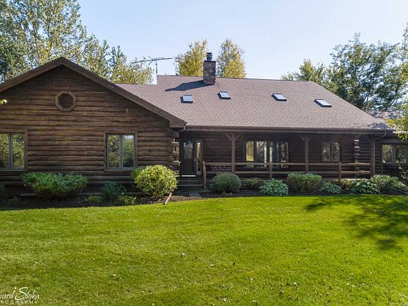 No hustle and bustle here! Remarkable opportunity awaits to have your own private retreat. Spacious 4800+ sqft log style home nestled on 9 wooded acres. The Serene 1st floor master suit with spa like master bath includes double vanity, Jacuzzi tub and separate shower, a true refuge of solitude and relaxation. Spacious eat in kitchen and dining room are perfect for entertaining. Architecturally elegant living room boasts soaring exposed wood beam ceilings, spectacular two story fireplace with wood burning stove, sky lights and welcoming french doors. Convenient Jack and Jill bathroom separates two 2nd floor bedrooms. 1st floor office/den and large laundry/mud room conveniently across from the garage. Every room has a spectacular view in this home. The basement with half bath can be finished to your liking. Extra large 3 car garage and 80x30 Morton Pole Barn offer plenty of storage for your vehicle(s), lawn tractor and other toys. Your secluded residence awaits! Make us an offer!