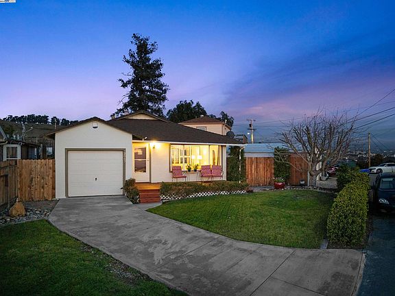 Prepare to be mesmerized by the enchanting sunsets & panoramic Bay Area views, including the iconic San Francisco skyline, visible from both the front yard & the living room of this delightful single-story residence perched atop a hill. Step inside to discover a haven of tranquility, illuminated by dual-pane windows that frame the captivating vistas. Freshly painted interiors complement the allure of refinished oak floors, creating a welcoming atmosphere throughout. Step out into the backyard & indulge in the serene mountain views, completing the picturesque setting of this remarkable home.While the kitchen is spacious and well-appointed, it's the breathtaking views that truly steal the show. Adjacent to the kitchen, you'll find a convenient laundry room & a newly added half bathroom for enhanced comfort. The spacious bedrooms offer relaxation, complemented by the updated bathroom.A recently enclosed patio/storage room adds versatility, perfect for a home office or workout space. Boasting a single-car garage & detached two-car garage, this home exudes charm and functionality. Whether you're savoring the stunning sunsets from the front porch, unwinding in the tranquil living room, or enjoying the spaciousness of the enclosed backyard, every moment in this home...unforgettable!