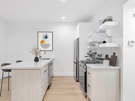 This two-bedroom, one-bath home boasts a state-of-the-art kitchen, in-unit washer/dryer, designer tile, matte black details, and a spacious open floor plan.