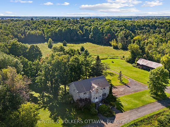 Set on an expansive 114-acre estate, this remarkable property seamlessly blends rustic charm, historical significance & a unique sugar shack opportunity. This stone home exudes timeless beauty, while the two barns on site, dating back over a century, add a rich historical layer to the property. Inside, features hardwood floors & tile throughout, w large windows that flood the space w natural light, accentuating the craftsmanship & the surrounding natural beauty. The residence includes 3 beds & 3 baths, including a newly renovated primary ensuite. You could even add another bedroom by closing in one of the mezzanines. A detached 3-car garage with electrical service is perfect for hobbyists. Embrace the regions maple syrup heritage w nearly 25 acres of sugar maples & a wood-fired evaporator in your own Sugar Shack. The property also boasts 3 kms of trails for snowmobiling or exploring the picturesque landscape year-round. Enjoy peace & quiet, all within 30 minutes from downtown Ottawa.