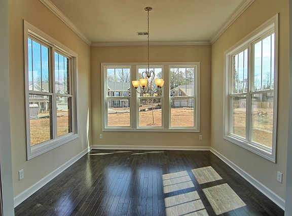 The Bridges, a brick surround Craftsman-style home with four bedrooms, three-and-one-half baths and a two-car garage is situated on a lovely CORNER HOME SITE! Large bonus/media room upstairs is ready for movie night! The kitchen opens up into a spacious sunroom and boasts stainless steel appliances - including a gas cooktop - and double ovens. Lots of enhanced cabinetry with granite countertops, under-cabinet lighting and built-in music port system. Master suite on the main floor with a luxury private bath and huge walk-in closet. Open great room with a cozy gas fireplace will be the perfect warm retreat on cool winter evenings. Elegant formal dining and living room. Beautiful hardwood floors flow throughout main floor. Call for more information about this home today!