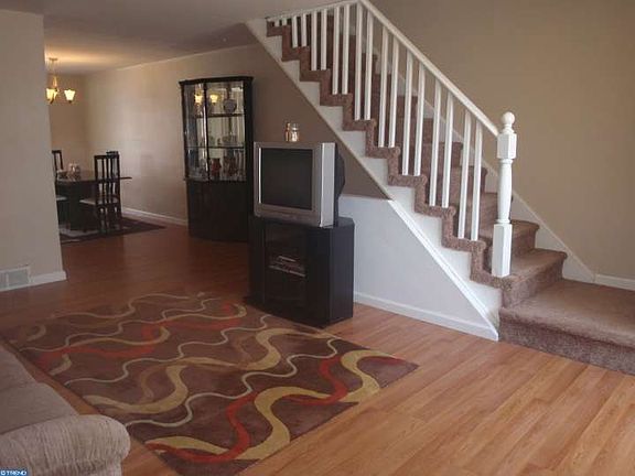 Home Sweet Home! Move right into this Beautifully maintained End Row with a fenced in yard, front patio and deck area. Sunny Living room with a decorative front door, large bay window awaiting all your holiday decorating ideas, formal dining room w/chandelier, area rug & dining room set. Updated kitchen with ceramic tiled floor, new granite counter tops, new dishwasher, new gas range, microwave & refrigerator. Enter into the 20x16 sun room addition, this bright & sunny room features a gas line for a future fireplace connection. There is a private side deck off of the sunroom that leads to an enclosed jacuzzi room. The 2nd floor features new carpeting, updated windows, Master bedroom with a beautiful bay window, walk in closet and a ceiling fan. 2 additional bedrooms with closets (furniture included) ceiling fans, Updated bathroom, linen closet. Large finished basement w/new carpet,pub table set,sump pump & laundry area. There are storage closets and an outside entrance to the rear which offers parking for 3 cars. There is an outside shed and an additional storage room under the deck. There is a Walk way from the rear to the front of the home. Updated HVAC system, Central Air & replacement windows. Walk to shopping, transportation & schools. Nearby park and minutes from 95 & the airport. Must see!