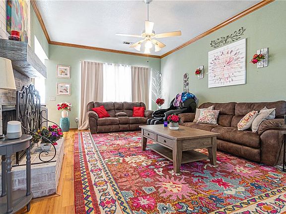 This beautiful 4 bedroom 2.5 bath has it all! Living room has high ceilings with a beautiful fireplace. Kitchen has gas cook top with built in double ovens. Master bedroom is large and features in suite master bathroom with walk in tub/shower with big walk in closet. Large formal dining room. Backyard has large deck with pool, building with hot tub, and storage building. Garage is oversized and will fit 2 cars and has an above ground storm/panic room. Neighborhood parks, trail, stocked fishing pond, & manicured greenbelt. Located close to shopping, dining, highway access, Tinker AFB, Boeing, & Rose State College. Call today for a private showing.