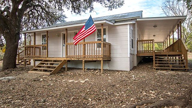 Really Cute and newly remodeled bungalow! Enjoy evenings on the wrap-around covered porch, or relax under the gazebo next to the coy pond. Inside, everything is new from the shiny wood floors to the ceiling fans. The living/dining room offers a wet-bar, and the kitchen features tile counter tops and new appliances. There is a small room that would make an ideal home office, nursery or third bedroom. Whether you are rightsizing, downsizing, just starting out or simply looking for a Hill Country get-away, this home is a keeper! (.74 unrestricted acres with No nit picky HOA! )