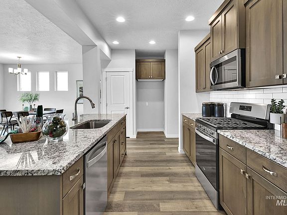 Mesa model | Blackrock Homes. LAST PHASE! One of Meridian's most popular neighborhoods is nearing completion and now is a perfect time to take advantage of our competitive pricing! MOVADO offers a close-in location with a community pool, 3 playgrounds, 1 +/- acre dog park, beautiful landscaping and several walking paths. This gorgeous model has an East-facing backyard overlooks an irrigation canal w/ no immediate neighbors behind. The expanded galley kitchen overlooks the living room w/ columns bookending the island, highlighting Blackrock's new SAND interior finish package, w/ Greywood stained cabinets and white Quartz countertops. Upstairs the Ensuite is separated from the three secondary bedrooms. LANDSCAPE MAINTAINED BY HOA, NO MOWING!! Photos and virtual tour are similar.