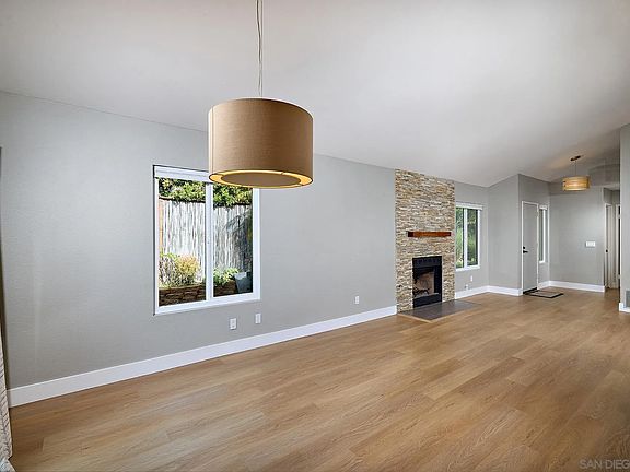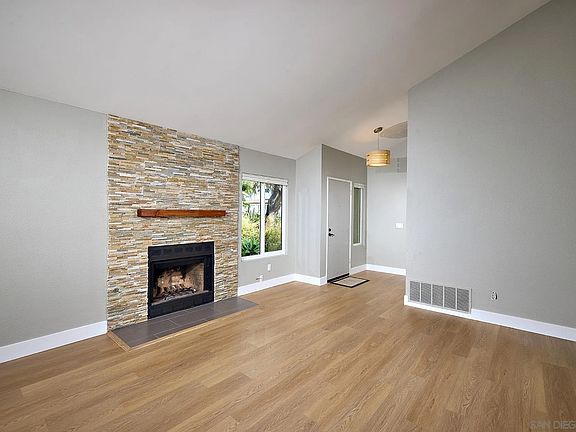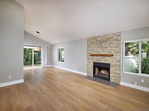 Perfect single-level living in prime Cardiff location! Enjoy spacious great room floor plan with vaulted ceilings, gas/wood fireplace, plus very special remodeled kitchen with eating bar, top-of-the-line stainless appliances and engineered quartz countertops! Large sliding door leads to charming private and low maintenance flagstone patio/yard~perfect for entertaining with its sunny western exposure! Master suite also enjoys vaulted ceilings + large closet. This charming home lives like a single family with only one attached wall, your own private yard, two-car garage, and HOA says pets are allowed. The ideal primary or secondary home~plus ideal investment property with maximum income potential for the coast!
