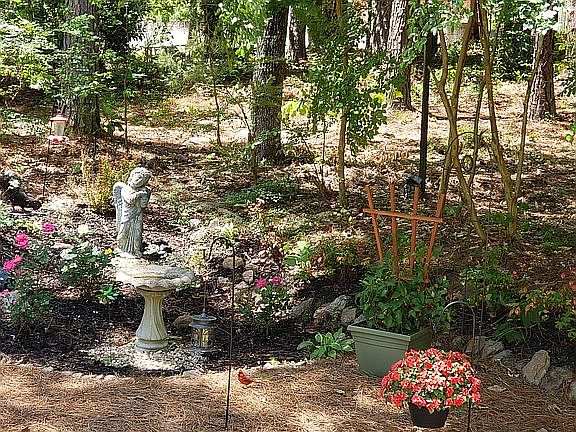 OVER AN ACRE WITH FULL FINISHED BASEMENT! Lovely, well maintained home. This one has it all! Summer evenings are meant for this rocking chair front porch! Step inside and you will find a large open family room with trey ceiling, fireplace with gas logs and pretty Brazilian cherry wood floor. Dining room features ample natural light and plenty of room for family and friends to gather. Charming kitchen has granite counter, tile back splash, copper undermount sink and two pantries. Spend relaxing mornings in the breakfast area or take your coffee and enjoy the covered screened porch! There is also an adjacent patio area for outdoor fun and parties. Spacious master bedroom features trey ceiling. Expansive master bath has plenty of space, separate shower, relaxing jacuzzi tub and tile floor. Split bedroom plan. Main floor features 2 additional bedrooms and full bath. Finished lower level could be a perfect in law suite with separate entrance and parking! Lower level features a large full kitchen and plenty of room for a dining area, 2 bedrooms, full bath and a large family room. There is a nice size room that could be used for storage/workshop. There are laundry hookups on each floor. Architectural roof is only 1 year old! Home also features gutter guards. This home has 3 lots which totals 1.1 acres. It is a wooded corner lot on a cul de sac. There is an outbuilding for extra storage and plenty of room to park your boat or your motor home! Play where you live! Fairfield Plantation is a gated community featuring golf course, club house, marina, 3 lakes, pools, beach, tennis and pickleball courts, walking trails and playground as well as 2 gated entrances with 24 hour security.