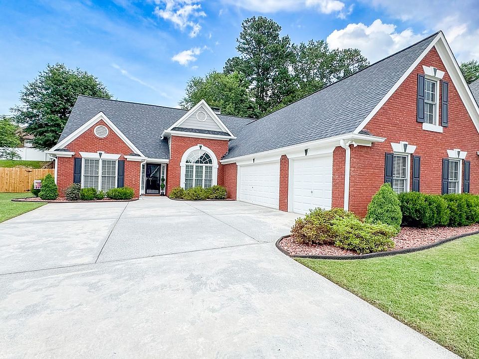 Welcome to this Immaculate Well-Maintained Ranch with HUGE Bonus Room. Brick Front with 3-car Side Entry Garage for Cars, Toys and/or Storage. Hardie Plank exterior sides and rear. The Foyer Draws the Eye through the Great Room to the Gorgeous Back Yard. Off the Foyer is a Spacious Office with glass doors on the left and a beautiful Formal Dining Room on your right. The Dining Room features Wanes Coating on the lower area of the walls and a 2-Story Trey Ceiling with a Designer Chandelier. The Large Great Room Features 15' Ceilings and is big enough for Large Furniture and also Features a Beautiful Stone Front Gas Fireplace. The Welcoming Kitchen offers White Cabinets, Stainless Steel Appliances and Plenty of Room with Bar and Eat-In Breakfast Area. You will also discover a High-End Kitchen Aid Double Gas Oven and Gas Stove with a Broan Vented Range Hood. You will also find a Bosch Dish Washer. Your Laundry Room and Pantry are conveniently located off the Kitchen as well. Upstairs is an oversized Bonus Room with closet and window and could easily be used as a 4th Bedroom. The Huge Master fits King Bed and accompanying furniture and features a Trey Ceiling. You will enjoy the en-suite with Large Tub and Separate Shower. The Bath Counter tops are separated by the locking entrance door from the bedroom. The split Bedroom plan has 2 good-sized Bedrooms and a Full Bath on the Opposite Side of the Home. Hardwoods are in most of the Home except the 2 Guest Bedrooms and Bonus. Come on Outside to a Covered Patio and separate Wood Deck for Grill, table and plants. The Backyard is fenced and well landscaped to create a Relaxing and Peaceful Atmosphere. The Roof Was Replaced 7 Years ago with 30 Yr Architectural Shingles. The HVAC is Lennox and is also only 7 years old. Water Heater is 4 yr old. Storage Building in Back. Property is located in Great School District with Middle School and High School within easy walking or driving distance. Minutes to Interstate 85 or State Rt 316, Mall of Georgia and many Restaurants and additional Shopping and Entertainment. This Should Be Your Next Home. Move-in Ready!