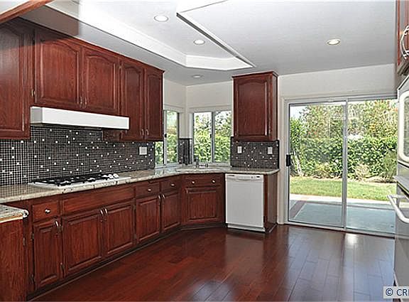 This beautiful Eastlake one-level home has everything you look for in a home. Cathedral ceiling and large windows make the living/dining room extra light and airy. Updated kitchen features granite countertops with designer backsplash, travertine flooring, recessed light and a nice eating area for quick meal. Stepping out of kitchen is a private and inviting backyard for kids play or family BBQ. On the separate wing off the living room are two nice-sized bedrooms with ceiling fans, hallway bathroom, and master bedroom with direct access to backyard. Master bedroom with soaking tub, shower, dual vanity sink and skylight provide ultimate living comfort. Inside laundry room. Gorgeous wood floors, travertine flooring and wood shutters throughout