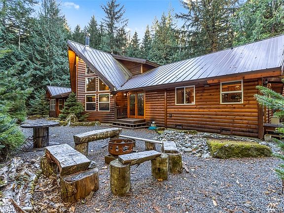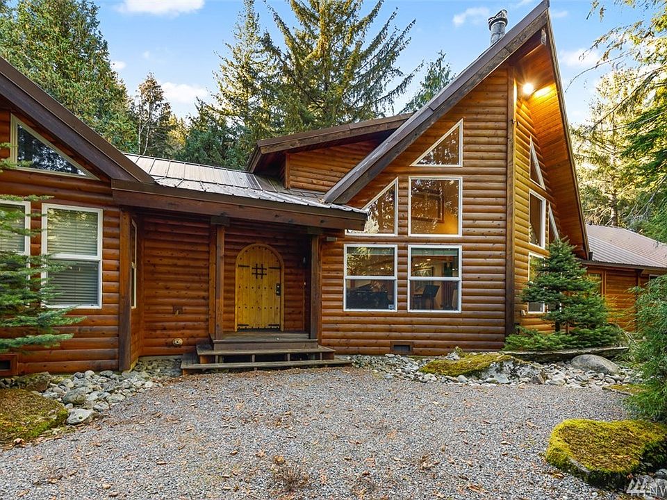 A riverfront home so private, it has its own freeway exit! Sitting along 680 feet of the South Fork, this custom log home enjoys a shy 15 acres surrounded by national forest. Soaring vaulted ceilings with exposed beams and walls of glass bring light and nature from the outside into the central Great Room. Appointed with Brazilian & cherry hardwoods, concrete, granite, slate & marble, the craftsman styling is milled with cherry and accented with Spanish doors, leaded glass and custom engravings. There are two master suites on the main floor with full bathrooms and jetted tubs located at opposite wings of the home. A third bedroom suite with full bathroom is located upstairs at the top of the Brazilian staircase. Floors are heated throughout.