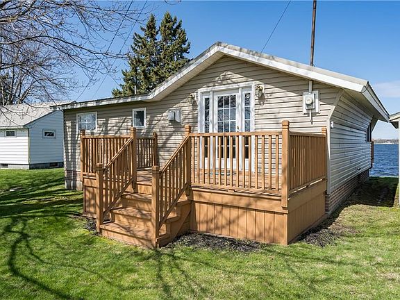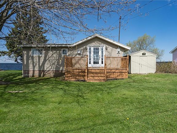 Fabulous Lake Ontario cottage with municipal water, deep lot and spectacular sunsets just minutes to downtown Sackets Harbor! It's all you'll need to relax lakeside! Super spacious bedroom (could be two), open kitchen/living room combo with gas fireplace, beautiful laminate floors, knotty pine room overlooking the lake, two decks and lots of remodeling done! This lot is the deepest usable lot on the road with a gentle slope to a Bach & Co. built seawall, flat-rock swimming and beautiful views of Sackets Harbor, Lake Ontario and Black River Bay! What a great home away from home! Season could be extended with a little work, home is on a floating slab with brick enclosure and no flood insurance is required. 75' of gorgeous lakefront is waiting for you! Don't miss out, call today!