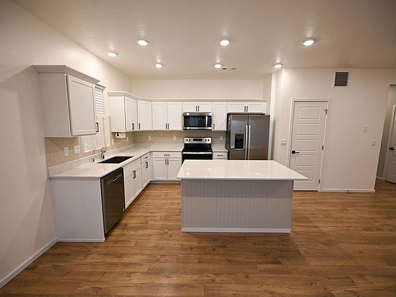 Sleek kitchenCenter islandAmple closet spaceRecessed lightingSpacious primary suitePlush carpetingDual-sink vanity