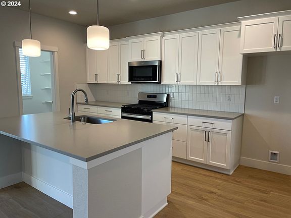MOVE IN READY! Lot 3 at Riverside at Taylor Park is a Modern style exterior with 2,090 sq ft and loads of flexibility! Fabulous great room layout and large windows provide ample light overlooking fenced backyards. Luxury gourmet kitchen with stylish white cabinetry, island, pendant lights, quartz countertops, stainless appliances and oversized walk-in pantry for plenty of storage. Warm tone laminate floors on lower and main floor - go with everything. A wonderful space to entertain. Great room features gas fireplace, laminate floors and high ceilings. Dining room sliding door opens to a covered deck. Let the Spring breeze in! Enjoy your morning coffee or happy hour after work! Spacious primary suite with walk-in closet and ensuite bath. Convenient upstairs laundry! Great flex space on lower level for private office/bonus room/Bed 4. Delightful patio with fenced backyard and fully landscaped! Blinds already in! Tankless water heater, solar ready, 95% efficiency furnace, ducts inside the home - all make for low energy bills. Perfect location in desirable Beaverton with excellent Hillsboro schools, parks and more. Quick commute to Intel and Nike. Model Open Fri-Sun 12-5pm. Vacant photos are of actual home. Staged photos are of the model home - same floorplan.
