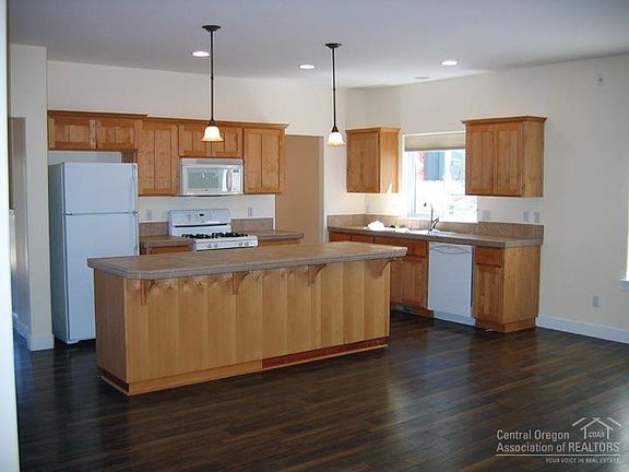 Light & bright craftsman style single level home in SE Bend. Features include great room layout with large kitchen, tile counters, large island with eating bar, pantry informal dining area plus gas fireplace with slate surround, built-in shelves, entertainment area wired for surround sound. Formal dining room with build-in book shelves, could also be used a office/den or family room. Fenced private backyard with access to patio from great room & master bedroom, rear-entry garage off alley.