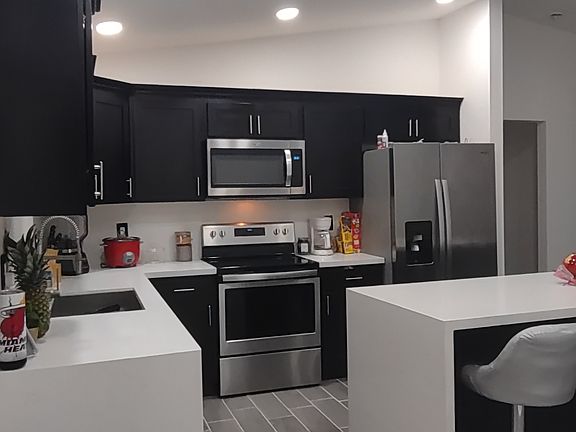 Large islandGranite countertopsOpen conceptLaundry roomImpact windowsRemodeled kitchenStainless steel appliances