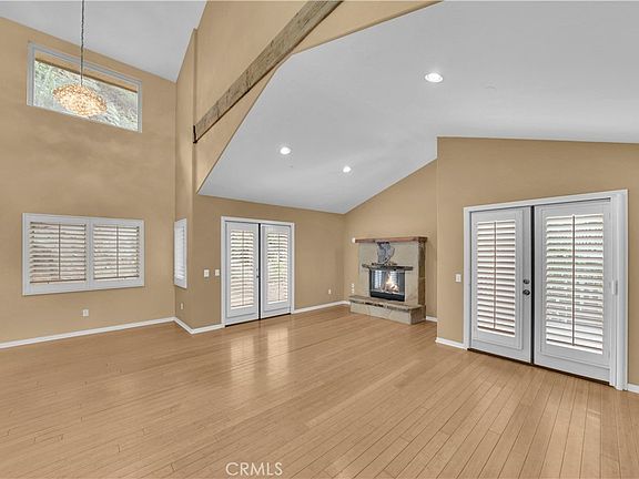 Beautiful custom home in the gated community of charming Hidden Valley Canyon. This 3-bedroom, 3-bathroom property features a main floor bedroom and full bath, ideal for easy access. The home boasts wood floors throughout, travertine flooring and walls in the bathrooms, and a spacious living room with vaulted ceilings and a cozy fireplace. The dining room is perfect for entertaining, and the master bedroom includes a walk-in closet, vaulted ceilings, and an enclosed balcony with views of the surrounding hills and nature.