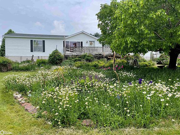 Beautiful home with abundant flowering landscape located right outside New Sharon on 11.55 acres. Majority of the land is currently being farmed. Also includes a pasture area with enclosed structure for horses.