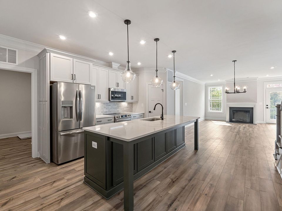 This Bayberry villa in Glenbrook is newly completed and move-in ready! The main-level living floor plan features a first-floor primary suite with 2 additional bedrooms and a full bath on the upper level. The open kitchen blends seamlessly into the dining area and family room, and showcases a large island with quartz countertops, dual-tone cream and sage furniture-grade cabinets, and a walk-in pantry. The primary suite bath offers a double vanity with quartz counters and step-in shower with bench. A functional mudroom with laundry, 1/2 bath, and coat closet complete the main level. Upstairs, you will find 2 additional spacious bedrooms, a large double-vanity hall bath, convenient pocket office, and versatile loft area perfect for a second family room, play room, or hobby space. Noteworthy quality throughout: wood shelving in all closets, energy-efficient windows, facade with real stone, fiber cement siding, oak stairs, high-efficiency HVAC, and so much more. Glenbrook is a beautiful community with a walking path to Crozet park and direct access to downtown Crozet. Actual photos!