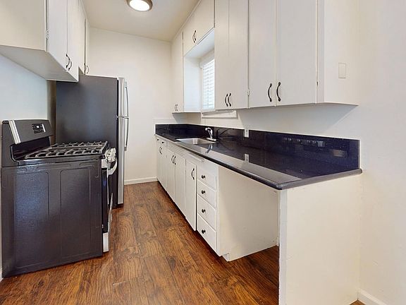 Step inside to discover brand-new laminate flooring and fresh paint throughout. The modern kitchen is outfitted with sleek white cabinets, granite countertops, and new stainless-steel appliances. Both bedrooms offer ample closet space and new carpet flooring, while the bathroom features a new toilet, upgraded fixtures, and a combined bathtub/shower for your comfort. The home also includes in-unit washer and dryer hookups for added convenience.