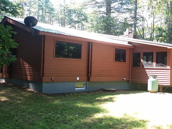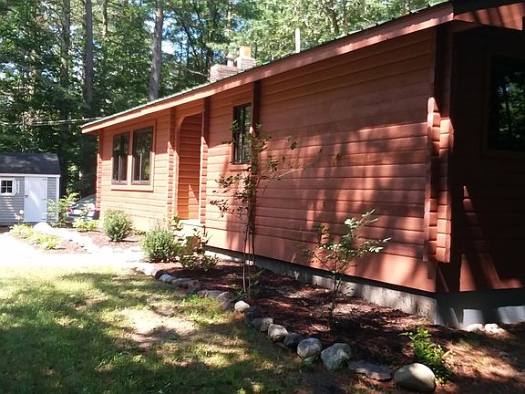 Meticulously renovated and upgraded Log home in low tax Wakefield. Totally new kitchen and appliances, bathrooms updated, electric panel and wiring updated, many windows updated, sliding glass doors new, new maple flooring, interior walls freshened and the exterior has been freshly stained. Main level consists of an open concept cathedral livingroom with stone fireplace, cathedral diningroom and kitchen, new sliding glass doors lead you out to the updated private screen porch. Plus 2 bedrooms and full bath on the main level. Lower level has an office/study, 3/4 bathroom, laundry and tons of storage space or finish it off for more living space. Ready for immediate occupancy.