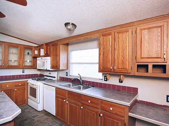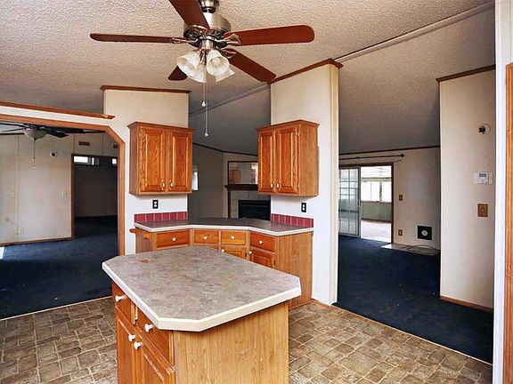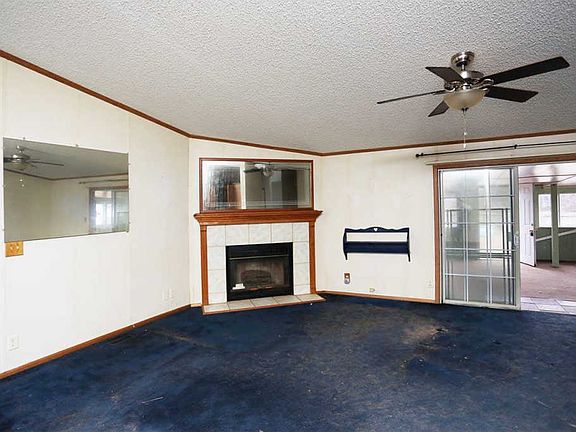 Large home on 10 acres. Double wide mobile with large living room with fireplace. A large sun room overlooks the back yard. The kitchen has a center island, a pantry, and plenty of counter space. Large master bedroom has a large walk-in closet and 2 bathrooms, one with a garden tub and one with a shower. The utility room is accessed from the hallway or the sun room. The back yard is fenced and has a storm shelter. There are 2 storage buildings outside the fence.