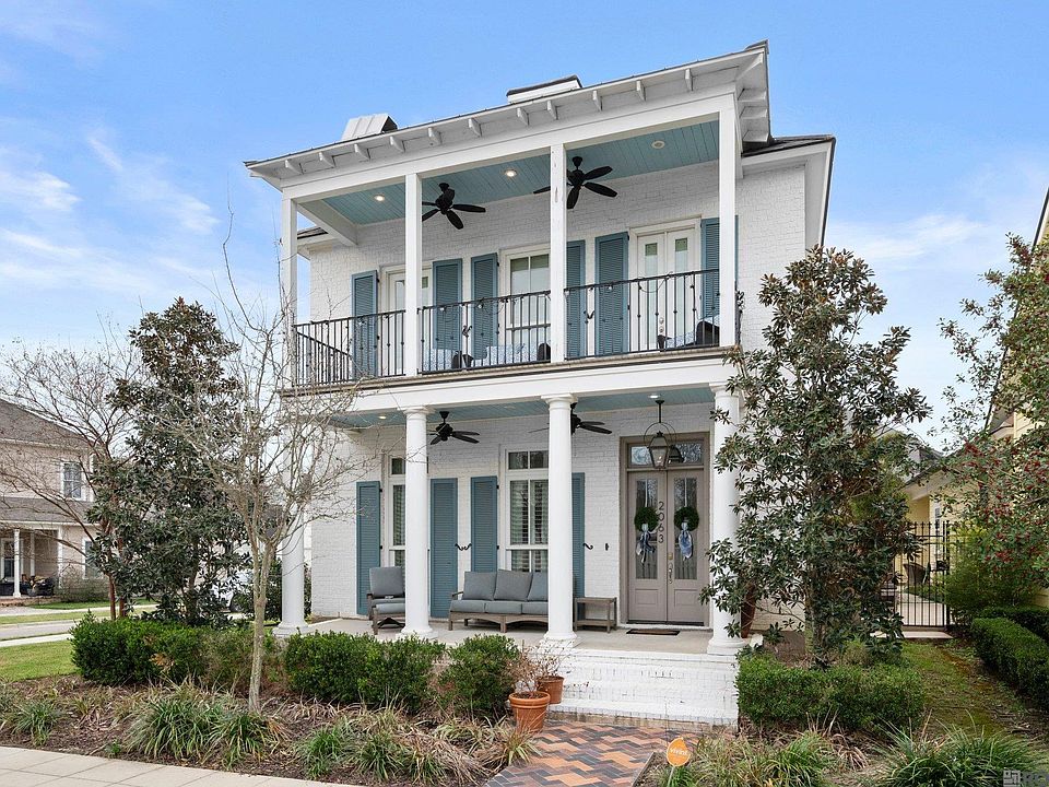 This stunning New Orleans-style home was custom built as builder's personal residence. Adorned with the ultimate southern front porch, balcony, and even a side porch with a retractable patio screen, gas grill, and swing for lounging! The home is welcoming into the spacious great room complete with plantation shutters, custom drapes, and a fireplace surrounded by built-ins. A gourmet kitchen awaits just around the corner featuring a Wolf range, large island with high-end light pendants above, exotic granite, and beveled backsplash with a pot filler. The master bedroom is located downstairs and offers new flooring and abundant space for maximum relaxation with a spa-like en suite bathroom featuring a custom job built tiled shower, separate soaking tub, dual vanities, and a large walk-in closet. Laundry room is conveniently located off of the master offering a wine cooler, built-ins, and ample storage. Upstairs opens up to a full bonus room and offers two full bathrooms and three spacious bedrooms; one of which includes its own bathroom and the other two provide access to sunset views from the balcony. Spoil yourself with this beautiful custom home ... luxury lifestyle in a prime location, offering a RESORT POOL - FITNESS CENTER - SILO FARM GARDEN - PLAYGROUNDS - CLUBHOUSE FRESHLY PAINTED INTERIOR (2025) / EXTERIOR (2024) - SECURITY CAMERAS AROUND PERIMETER - WHOLE HOUSE GENERATOR