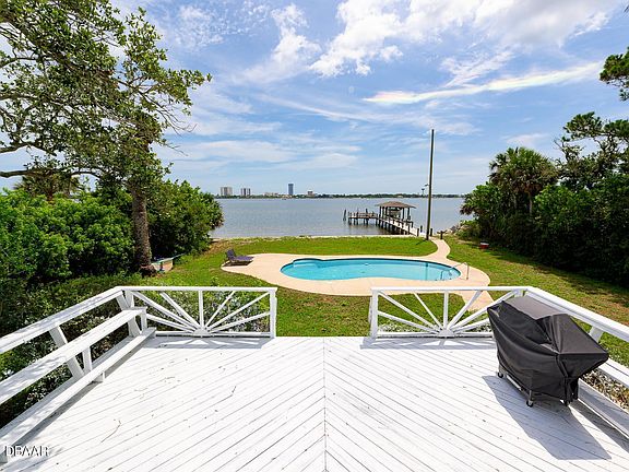 A boater's and fisherman's dream! Live like you are on vacation in this gated river front pool estate home with unobstructed views of the Halifax River! Enjoy your updated dock that has electricity, water, covered 10 x 35 boathouse with boatlift, custom seating and extra boat parking! Some of the recent updates include a gorgeous brand new kitchen, luxury vinyl flooring, custom high-end tile in main bathrooms, interior/exterior paint and more. With almost an acre, this property measures 100 feet wide by 375 feet long! On the main floor you will find the master suite and a guest bedroom. The 3rd bedroom is located on the upper floor and is currently being used as an office. On the the ground floor you will find a private entrance, laundry room, 4th bedroom, a second living......CONTINUED