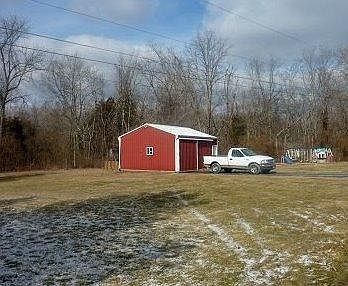 Brick ranch on almost 2 acres, sits back off road on Carey Lane. 20x24 pole barn/ shop with electric. Refinished hardwood floors. Replacement windows. Porch with neighboring pond view. Public water at street.