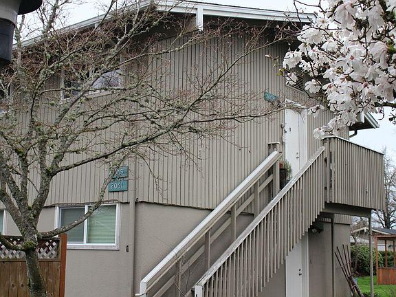 2 bedrooms/1 bathroom in a four-plex (upstairs unit) located in the Westmoreland Village. Available on November 1, 2025. Applications through zillow are accepted until filled. Our property includes an on-site fitness center, on-site laundry facilities and a rentable community room. We are close to bus lines, shopping, and 3 miles to the U of O. All apartments come with a dishwasher, range, built-in microwave, and refrigerator. One parking lot is assigned for each unit, and limited visitor parking is available. Water, Sewer, and Garbage is included! Tenants are responsible for their own electricity through EWEB. 2 cats max. are accepted with an additional security deposit of $300.00 for the first cat and $200 for the second cat. Cats are accepted with additional security deposit. Please feel free to drive by. This is owner managed and thus, please do not contact Jennings Property Management Company. CONTRACT TERMS: One year contract only and renewal after that. Security deposit of $900, rent is $1,195/month. No application fee. One year lease only and renewal after that. Tenants are responsible for electricity. Landlord is responsible for water, garbage and sewer.