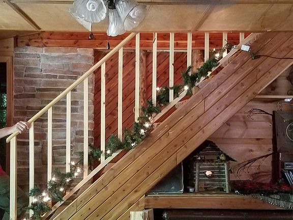 So much to offer describes this remodeled 4BR/2.5BA, finsihed basement features rustic den, FB w/ gas logs, master WI closet, whirlpool tub, hardwood, tile tankless hot water heater, kitchen appliances, large fenced-in backyard, water filtration, cedar lined closet, newer roof, tilt double pane window, screen deck, creek, 2 car detached garage w/work bench, RV parking, blackberry, blueberry and raspberry bushes and flatscreen to boot! CRS does not reflect finished basement. Home warranty offered for peace of mind.