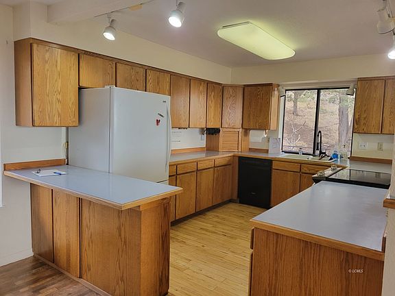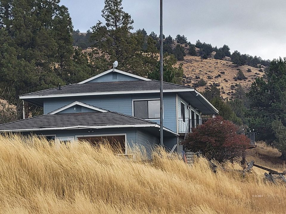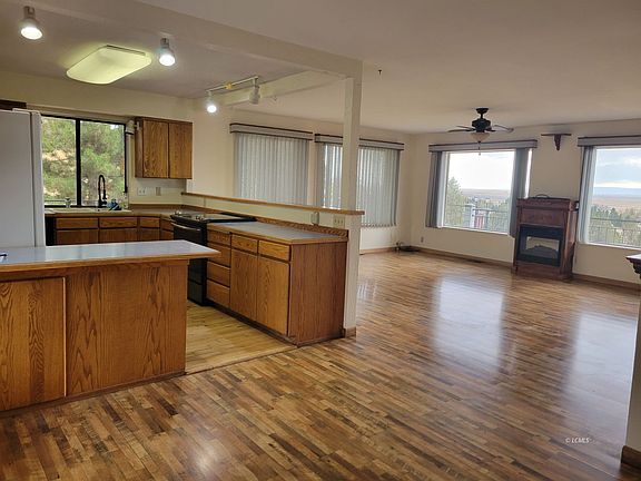 The view from this home is priceless. 3 Br 2 Ba open floor plan. Sits on 3.01 acres. Family room with a bar and office area. 1 car garage with shop area. Laundry room with pass through cabinets to the master bedroom with master bath on the main floor. A fountain off the back patio is the perfect place to watch the abundant wildlife that passes through the back yard. Plenty of room to park an RV. Front deck wraps around the back of the home for watching the sunsets. This hillside home will not last. Trees adorn the landscape Dog run with dog door and doghouse.