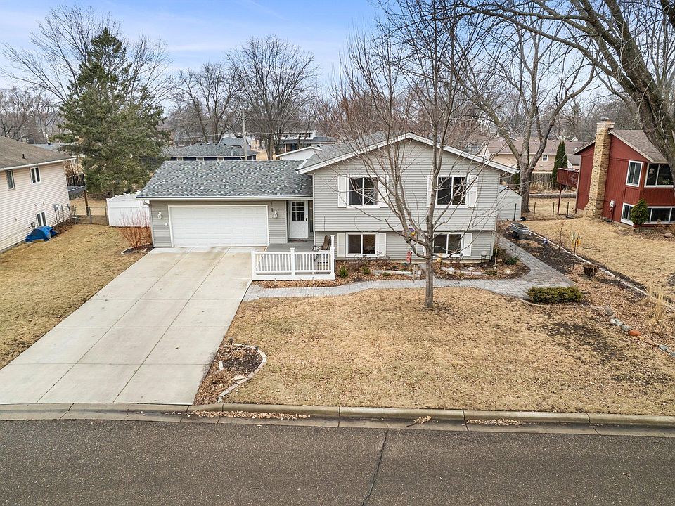 This one owner home has been meticulously cared for and updated for a modern, family friendly lifestyle! Kitchen was remodeled approximately 10 years ago creating an open primary living space for a growing family or the person who loves to entertain. You will love the enameled cabinetry with roll out drawers, quartz countertops, awesome center island, Subway tile backsplash, undercounter and recessed lighting, stainless appliances and luxury vinyl plank flooring. The living room, kitchen, dining areas are one great room. The living space is enhanced by the all glass, 3 season sunroom/porch, and maintenance free deck. There are 2 bedrooms up and 2 down, and a bath on each level. Both baths have been completely remodeled with heated ceramic floors, one with a completely tiled ceramic shower and the other with a deep soaking tub. See pictures of how pretty they are! The lower level family room has been used as a guest suite for the past few years, and has a great storage closet. It is decorated with a wood painted ceiling, ceiling fans and accesses the walk out door to the huge patio. These items have been updated: windows, carpet, roof, front deck, recessed lighting, baths, kitchen, garage floor epoxy, concrete driveway, front sidewalk and steps to backyard, back patio and stone steps and new landscaping with perennials and shrubberies everywhere! This is a must see property and a quick closing is available! Seller is retired and downsizing.