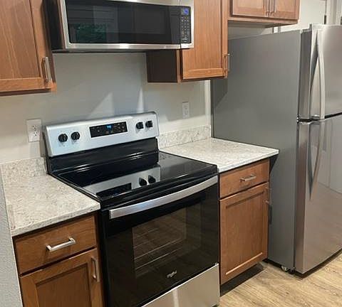 Available for move in mid September! Completely remodeled 2 Bedroom, One Bathroom home featuring new stainless steel Appliances, New Washer & Dryer, New Flooring, Fresh Paint, New Kitchen and Bathroom. This home has a nice yard with a single car garage for parking. Walking distance to Hazeldale Elementary School, short commute to Aloha HS and walking trails at Jenkins Estate. All applicants must meet screening criteria listed with application. No pets No smoking Owner pays water/sewer and trash. Owner will maintain yard, with light watering duty requirement from tenants. No pets, no smoking, max of two vehicles. Application fee is $80 per person. Electricity is the responsibility of tenant.