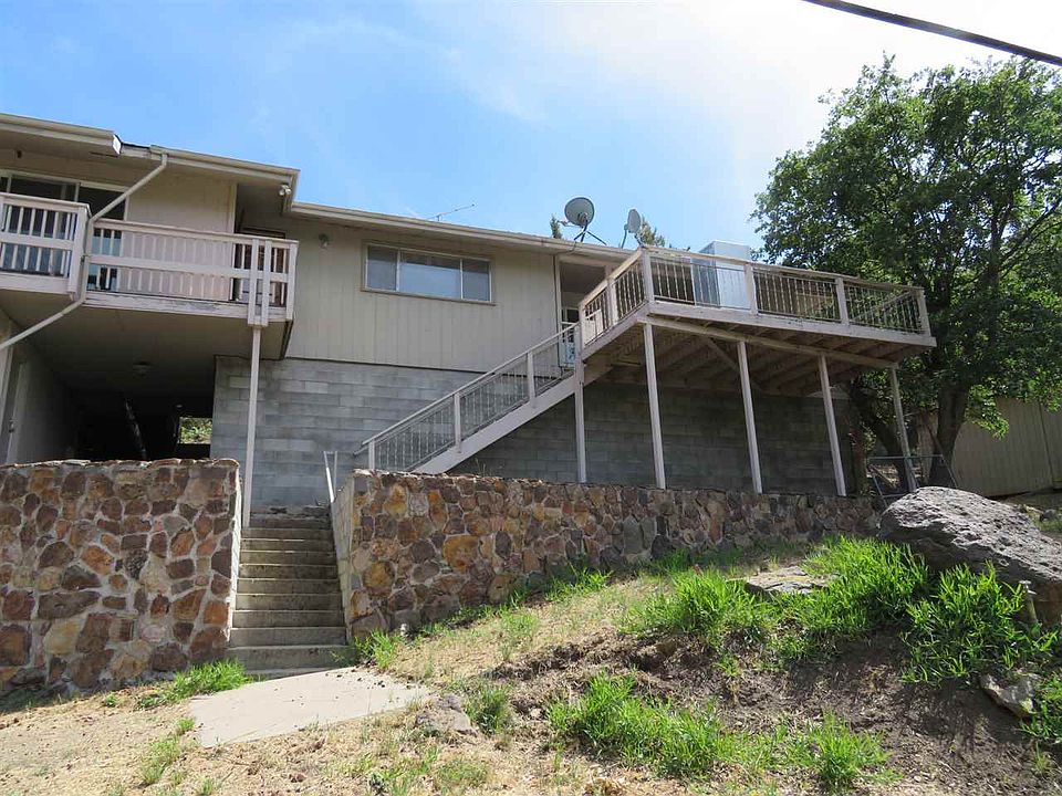 Large tri-level home with a great view of the lake and hills. The home needs rehabilitated but will be well worth the effort. Cute detached workshop/office that sits behind the house. Cold storage "cave" behind the house as well. One of the smaller included parcels is lake front.
