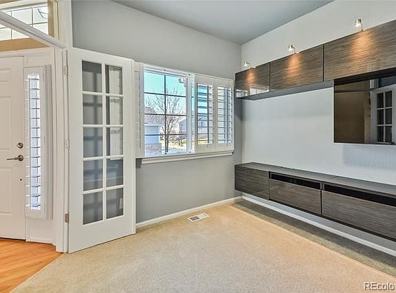 Immaculate, beautiful ranch townhome in Hillside at Greenfield! This maintenance free living home has been updated throughout including freshly refinished wood floors, newer carpet and paint, new modern lighting, Plantation Shutters throughout, a gorgeous stone fireplace and complete Nest System for your heating/cooling/smoke and carbon monoxide alarms! The main floor boasts an open floorplan with stainless appliances in the kitchen, 2 bedrooms, 2 bathrooms and amazing natural light. The finished, walkout basement will not disappoint with a bedroom, bathroom and open bright recreation room. The unfinished area has a workshop with utility sink and an abundance of storage! The oversized garage has room for extra storage, a finished floor, is dry-walled and insulated. Enjoy mountain view and open space from your maintenance free deck or the stamped concrete patio. Located with incredible convenience to Cherry Creek schools, biking trails, pool, tennis courts, shopping and airport!