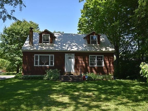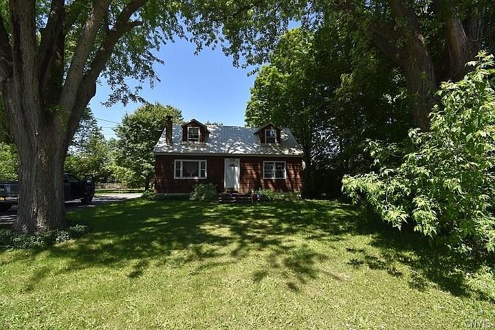 Adorable Cape Cod now available Just outside City Of Watertown. This home features unique layout with spacious, sunken living room leading out to back deck. Bright & cheery kitchen provides space for dining or set that formal table up in the front room; currently used as a den. 2 bedrooms and full bath on first floor. 2 larger bedrooms upstairs too. Full size basement provides lots of storage. Home heats with efficient natural gas heat, but also has woodstove for additional winter comfort. Back deck leads to Deep backyard with mature trees, storage shed, and playset for year round fun! Country living within walking distance to restaurants and stores. Priced to sell! Call or text to schedule your showing.