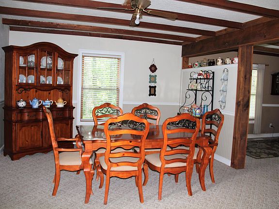 Welcome Home to your own little oasis! This home features open beam ceilings in the living and dining rooms with a huge laundry room/pantry located just off the country style kitchen. This 3 bedroom home has plenty of storage with over sized walk-in closets. Central heat and air can keep you warm but your pellet stove is amazing for those cold winter months! There is a 2 car detached, 24 x 24 garage, workshop with additional 30 amp service for your RV, chicken coop and nice sized pole barn. Enjoy sitting on your front porch watching wildlife in abundance or picking fresh fruit from your own trees. There are apple, pear, peach and pecan to choose from! This home sits on 9.78 acres of pure enjoyment. Give us a call for your showing.