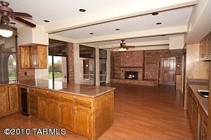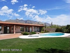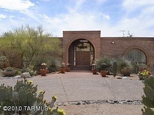 Classic Tucson Territorial enhanced by large arched windows and lush desert landscaping. Overly generous sized rooms with soaring ceilings and interior adobe walls create an ambiance of charm & character. Granite kitchen. Two large master suites, both with outstanding views. 3-FPls. Walls of windows overlooks backyard pool area, custom decorative metal gates, circular driveway all in sought after foothills location.