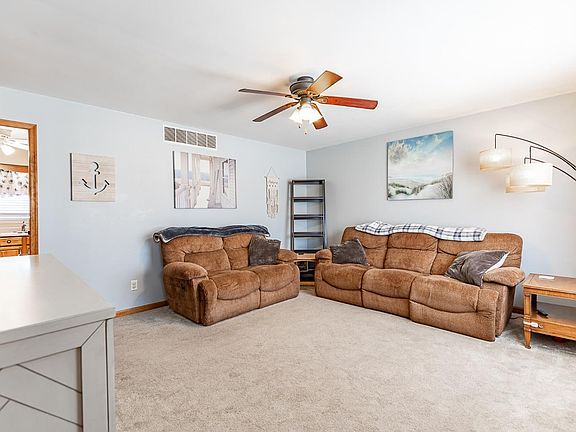 WELCOME HOME! Start off your 2024 with this COZY home! This spacious ranch, has 3 bedrooms and 1 3/4 bathrooms. As you enter the home, you will notice the NICE SIZED front room. There is a LARGE eat in kitchen with a door leading to the LARGE, fenced backyard. Three bedrooms and a full bathroom complete the main level. The generous, finished basement has a 4th bedroom, office or game room and an additional bathroom. The enormous laundry room has BUILT IN SHELVING and extra storage space. The attached 2.5 car garage is a SMART garage with ceilings high enough to accommodate an enclosed netting for the GOLF enthusiast to practice their swing! This home is located in a cul de sac for a little extra piece of mind.