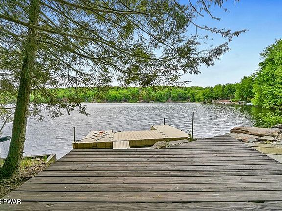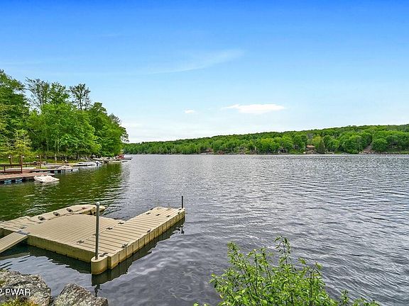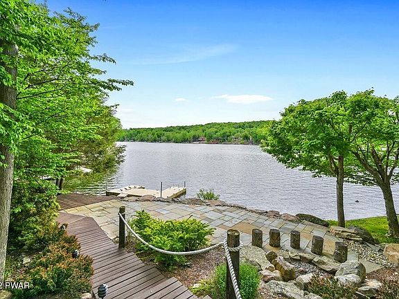 POWERBOATING LAKEFRONT HOME in a very private setting in a four-season amenity filled community in The Northern Poconos, just two hours from the NYC, NJ and Philadelphia Areas. Enjoy the amazing sunsets and all-day sun from the western view. Located in a private cove with one side bordering a greenbelt that cannot be developed. COMPLETELY remodeled with quality in 2018! This home features 6 bedrooms, 4 bathrooms, three finished levels, extensive landscaping, lakefront bluestone patio with firepit, EZ plastic floating dock with ladder for easy swimming and room for your boat and jet ski. Relax in the hot tub on the lower-level patio! The huge, no maintenance Timbertech deck was completed in 2019. There's an amazing screened in porch too!, Beds Description: 2+BedL, Beds Description: 2+BED 2nd, Beds Description: 1Bed1st, Baths: 1 Bath Level 1, Baths: 1 Bath Level L, Baths: 2 Bath Lev 2, Eating Area: Dining Area