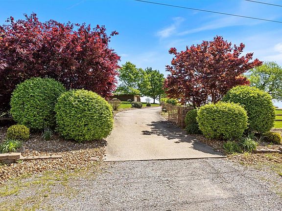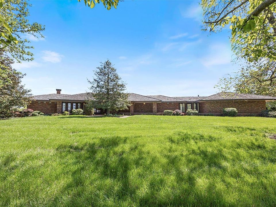 JUST OUSIDE THE CITY LIMITS ON 3.77 ACRES W/AMAZING VIEWS & CONVIENENT LOCATION! Gated spacious MOSTLY BRICK RANCH w/9' ceilings, oversized 2 car garage (31 X 25) w/heater. Breezeway leads into house, basement & garage. Large open foyer w/wood floor that steps down into the Liv rm w/gas brick FP. Office/Library has wall of built-in wood shelves, brick gas FP. Formal din rm has built-in cabinets, sink & bar refrig. Kit feat many cabinets w/backsplash, SS sub zero refrigerator, double oven, electric cooktop, hood, pantry. Breakfast nook has sliding door to vaulted Sun room (no heat) w/stacked windows, built-in bar-be-que pit, electric logs. Mast bath feat double sinks, dressing table w/built-in shelves, shower & additional sink. 3 hall closets (one closet is cedar lined). Main floor Laundry rm has cabinets, sink, closet (electric hook-up for dryer). LL is finished as one large room approx.1223 sq ft/crawl space under the rest of the house. Not in a subd. Exceptional well built home. Additional Rooms: Sun Room