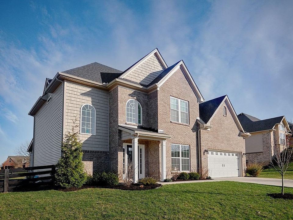 Immaculate - Jackson II Plan by Ball Homes. Move-in ready features 5 bedrooms, 3 full baths. The light-filled entry is vaulted, the open concept layout in the Family Room/Kitchen features beautiful hardwood floors on the first floor. The kitchen is highlighted by granite counter tops. Stainless appliances with a double oven. The kitchen is anchored by an island with an eat-in bar. The Mudroom features a drop zone. The guest suite has a bay window. The second floor is anchored by large Master Bedroom with trey ceiling. The Master Bath features a fully tiled shower with 2 shower heads, glass door and large soaking tub with tile surround. 3 well-appointed bedrooms w/spacious closets, hall bath w/linen closet. Duel Zone HVAC, 80 gal water heater. Covered patio. Large corner lot fenced rear yard.