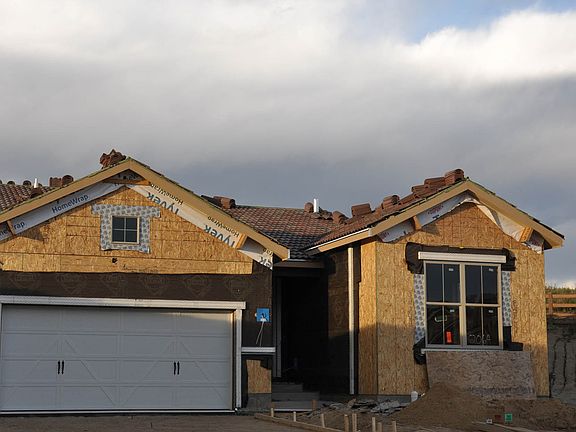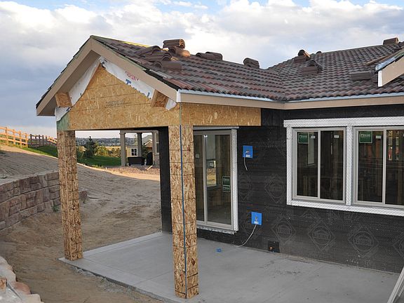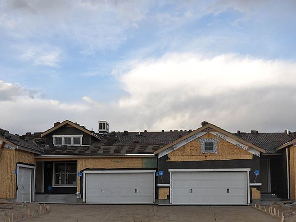 Ready in September. Telluride paired patio ranch plan with 2 car garage in The Village of Cortona at Flying Horse. 2 bedroom, 2 bath home. Kitchen features designer cabinets with crown molding and quartz counters. Kitchen Aid stainless appliance with gas cook top. Includes gas fireplace and air conditioning. Unfinished basement includes 1ft. taller ceilings, wet bar rough in, plus ability to finish 2 bedrooms, 2 bathrooms and recreation room. Exterior living includes expanded patio.