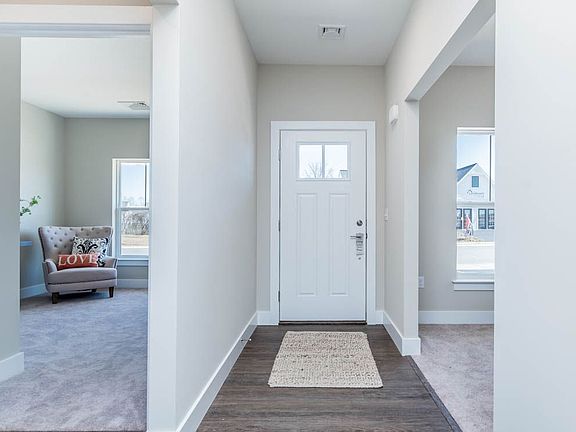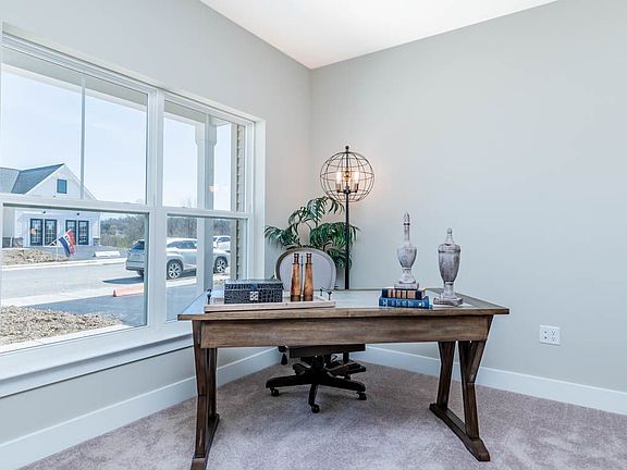Convenient single story living in this home complete with a 2-car garage with mudroom entry and an inviting front porch.. The home features an open floor plan and a flex space room that can be used as a study, living room, or other space. Stylish vinyl plank flooring in the foyer extends to the great room, kitchen, dining area, and mudroom entry. The open kitchen includes attractive cabinetry, stainless steel appliances, and quartz countertops with tile backsplash. The sunny great room with an electric fireplace opens to the dining area and provides access to the patio. The owner's suite is quietly situated to the back of the home and includes an expansive closet, and a private bathroom with a 5' shower and double bowl vanity.