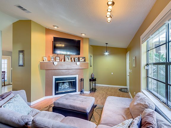 Located in the beautiful Greenbriar Place Community. This spacious 4 bedroom 2 bathroom home has wood laminate flooring in all the bedrooms and living spaces. The eat-in kitchen is tiled with stainless steel appliances and a breakfast bar. There is a gas furnace, gas water heater, and a gas stove. Home has been freshly painted and has a wood burning fireplace! The large fenced backyard has a custom made outside deck perfect for entertaining or just relaxing under the shade from the trees. Conveniently located to grade schools, EFSC, shopping, golfing, and Wickham Park. Home Warranty expires in May 2017 and the owner will pay for another full year! This is a must see! It will not last long!