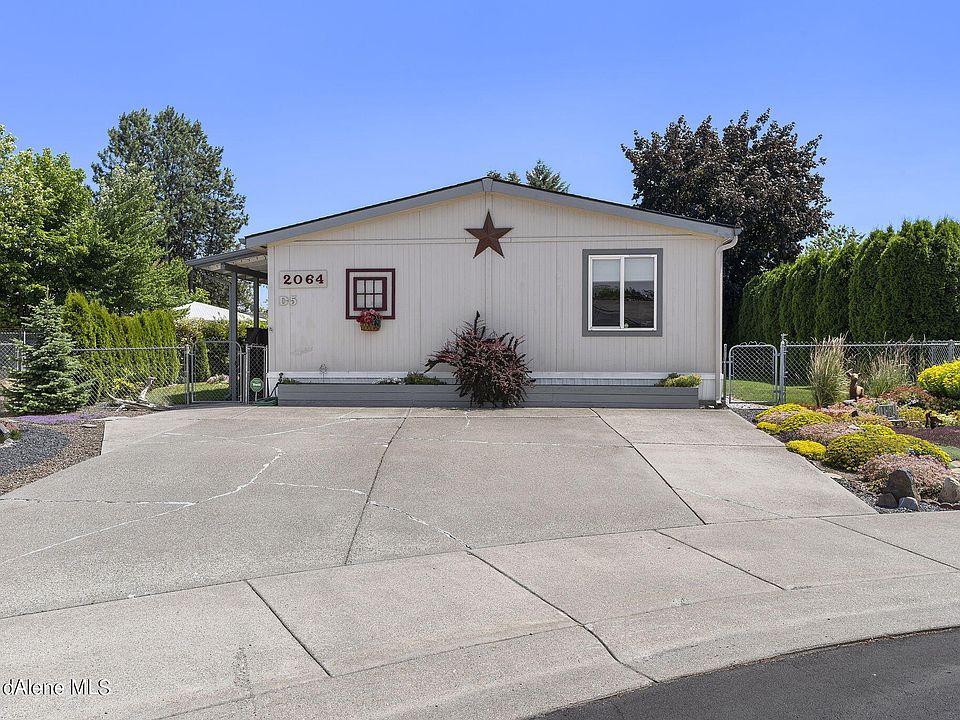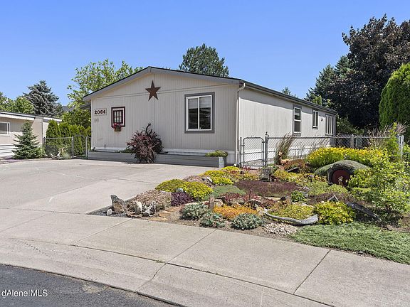 Premium Location in Oak Crest Park just minutes from downtown Coeur d'Alene and the lake: 3 Bedroom, 2 Bath Manufactured Home on Leased Land. Beautifully Landscaped yard with additional parking and fenced yard. New HVAC system installed in 2022, very well maintained home. Park Amenities; Clubhouse, Swimming Pool, New Playground, BBQ Pavilion, and Pickleball.