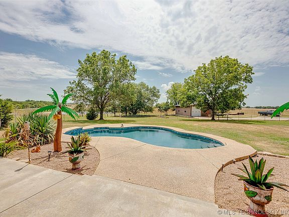 Beautiful, South Tulsa 3+ MOL acre ranchette! Western style 3 bedroom with a wood slatted, vaulted ceiling in the great room and master! 2 recently remodeled bathrooms with a huge walk-in tiled shower in the master bath. There's a beautiful wood burning, rock fireplace that ties the entry into the living area perfectly! The recently carpeted two car garage with heat and air is currently being used as a great entertainment spot right off the kitchen and back patio, but has plenty of closet space to be a third bedroom, or if desired could be converted to 2 separate rooms for a 4 bedroom home since there is plenty of space. This currently creates a great flow for entertaining since the house boasts THREE sliding glass doors that all lead out to the breathtaking backyard and pool area! The master has two walk-in closets and it's own sliding glass door for plenty of privacy. All windows are sliding glass and oversized. Outside you will find new fenced and cross fenced pastures for your animals and a huge fenced backyard for your dogs. There is a large, 20 x 120, covered carport area that currently houses panel and wood stalls for the horses, but has been used as a car lot in the past and would be a great asset to a home business in any facet as it has direct hwy 75 frontage! In the backyard is a raised bed for your veggies and by the shop the cutest little chicken house for all those home grown eggs. There's also a super nice insulated 30 x 40 shop with concrete floor and two drive through over head doors with 220 electric. This home has a fantastic 10 x 40 covered back porch with a serving window out the kitchen for entertaining. This overlooks the newly resurfaced and retiled pool. All appliances are included. Close to town and the perfect spot for a home based business! Roof/windows/hvac all newer. Owners have gone through this property and made a ton of improvements. Priced to sell and ready for it's new family or business/stalls negotiable/owner finance possible
