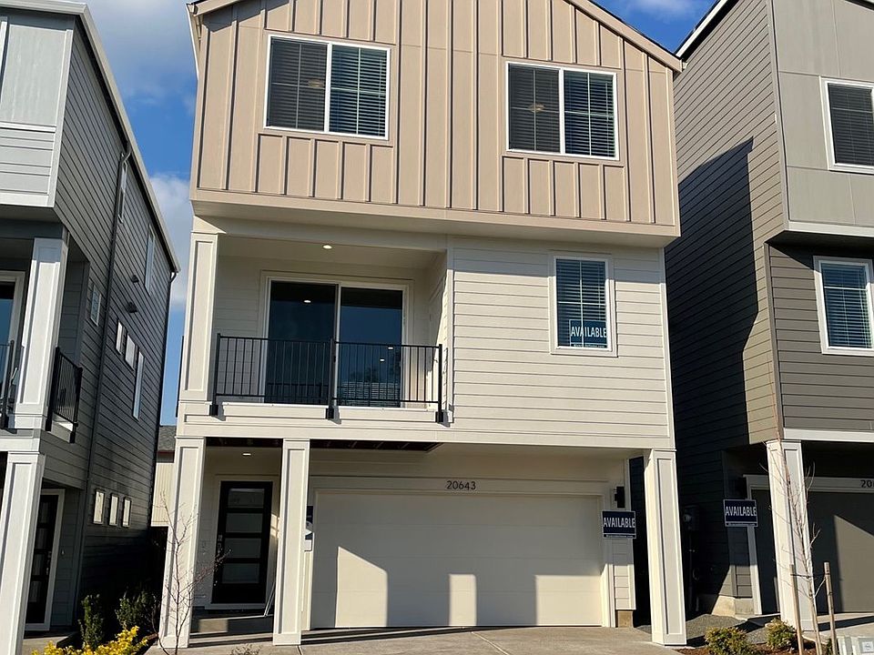 MOVE IN READY! Lot 4 at Riverside at Taylor Park is a NW Contemporary style exterior with 2,090 sq ft and loads of flexibility! Fabulous great room layout and large windows provide ample light overlooking fenced backyards. Luxury gourmet kitchen with stylish white cabinetry, island, pendant lights, quartz countertops, stainless appliances and oversized walk-in pantry for plenty of storage. A wonderful space to entertain. Great room features gas fireplace, laminate floors and high ceilings. Dining room sliding door opens to a covered deck. Let the Spring breeze in! Enjoy your morning coffee or happy hour after work! Spacious primary suite with walk-in closet and ensuite bath. Convenient upstairs laundry! Great flex space on lower level for private office/bonus room/Bed 4. Delightful patio with fenced backyard. Tankless water heater, solar ready, 95% efficiency furnace, ducts inside the home - all make for low energy bills. Blinds already included! Perfect location in desirable Beaverton with excellent Hillsboro schools, parks and more. Quick commute to Intel and Nike. Model Open Fri-Sun 12-5pm. Vacant photos are of actual home. Staged photos are of the model home - same floorplan.