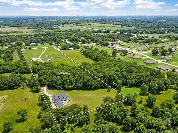 10 acres w/gated entrance! 3 beds, 2.5 baths, office/den, upstairs family room/possible 4th bedroom, large living area, formal dining, kitchen w/island, laundry/mudroom w/sink, safe room & work area in garage.Mahogany cabinets, solid oak floors, woodwork throughout, 2x6 studs, remodeled master bathroom with digital controlled heated floors.Outdoor features- new roof, wrap around porch, fire pit, hot tub, shed w/elec, baseball backstop, arena w/lights, stable w/tack room, 2nd garage, barn, pond.