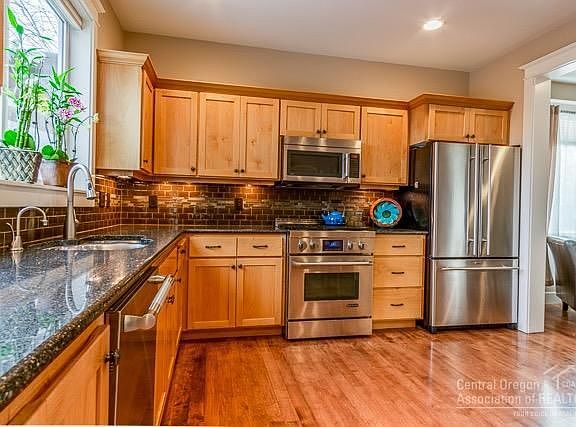 Spacious home on Bend's Eastside in the popular Yardley Estates! This home features a large kitchen with granite countertops, full tile backsplash, hardwood floors and a eating nook. There is a large dining room between the kitchen and living room. Cozy up to a gas fireplace in both the living room and the huge upstairs family/bonus room. Outside you will enjoy a low maintenance backyard with an expansive concrete patio, covered front porch and rare, enclosed RV parking.
